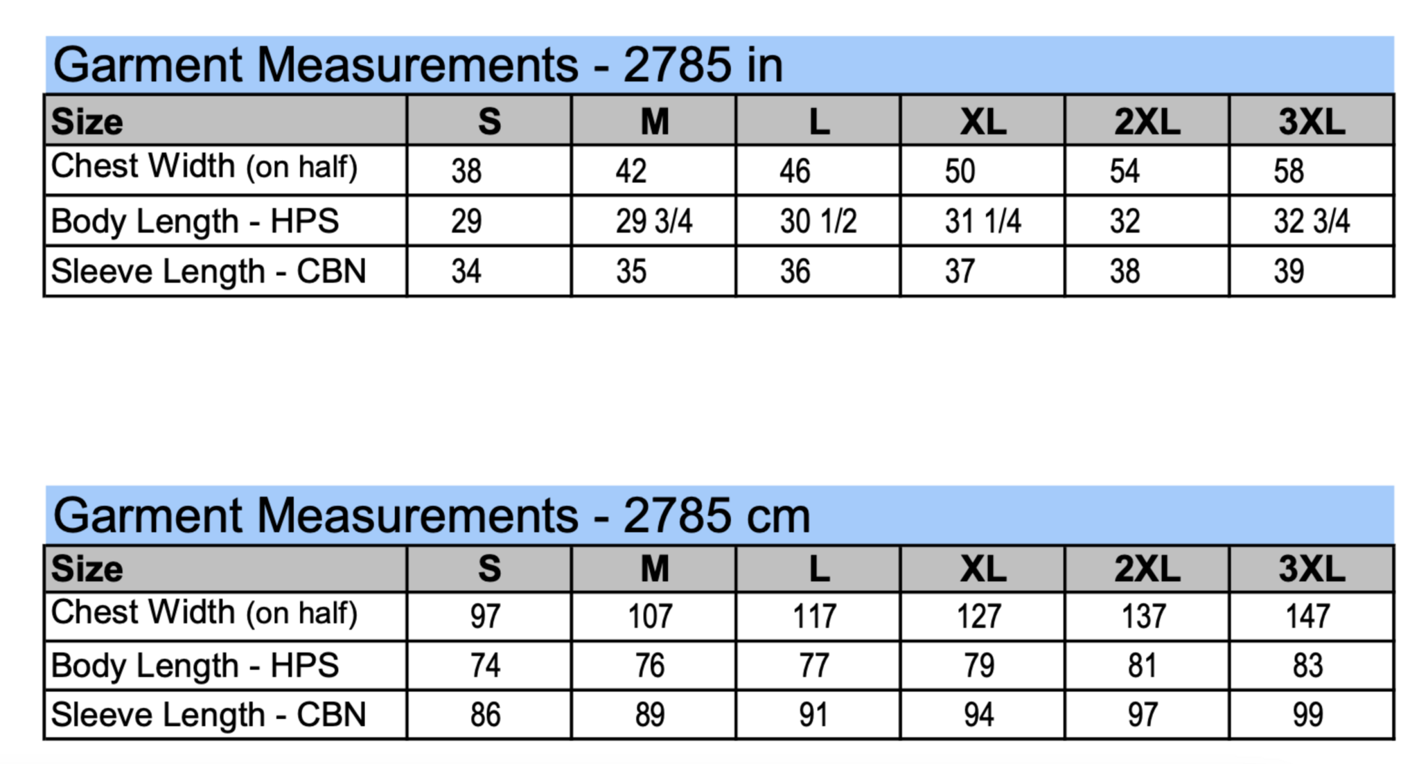 Size Chart -