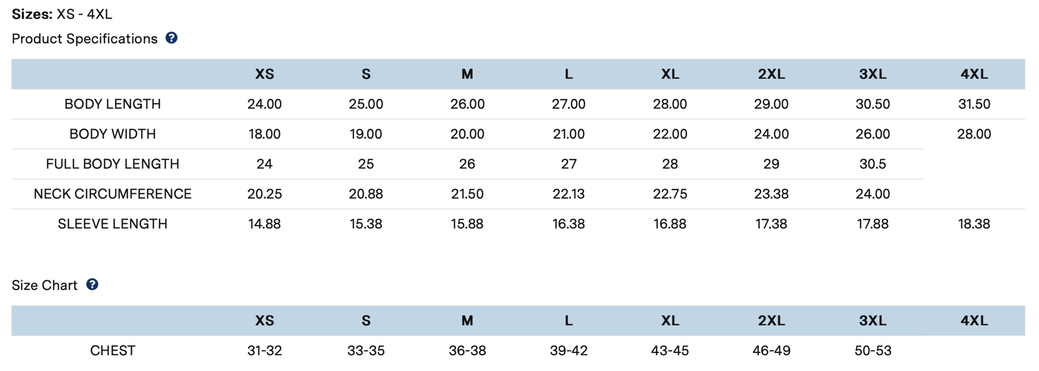 Size Chart -