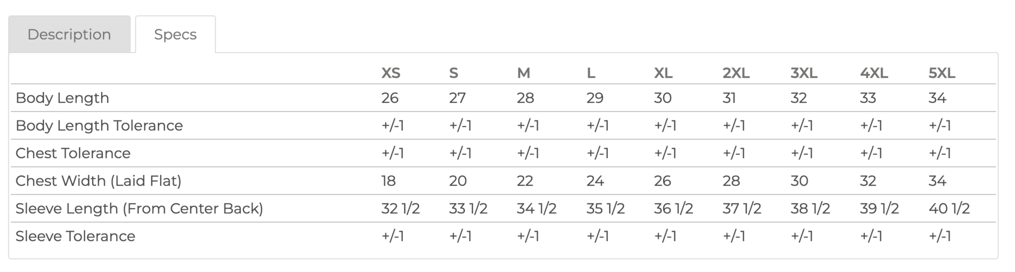 Size Chart -